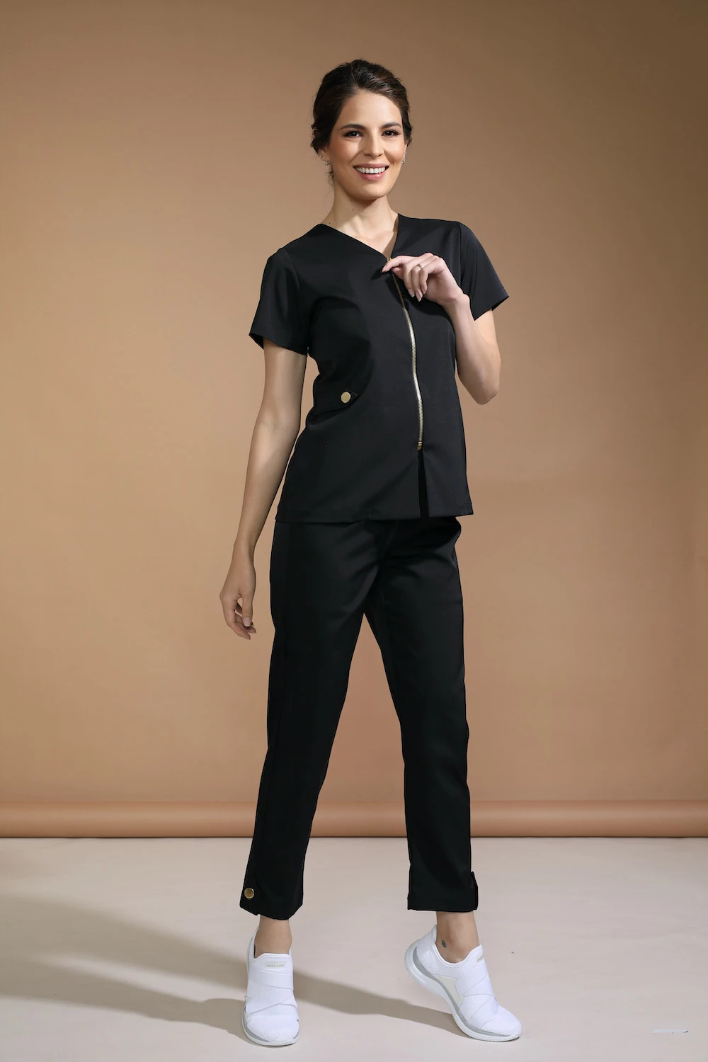 Estilo elegante, detalles dorados. Tela strech-antifluído.